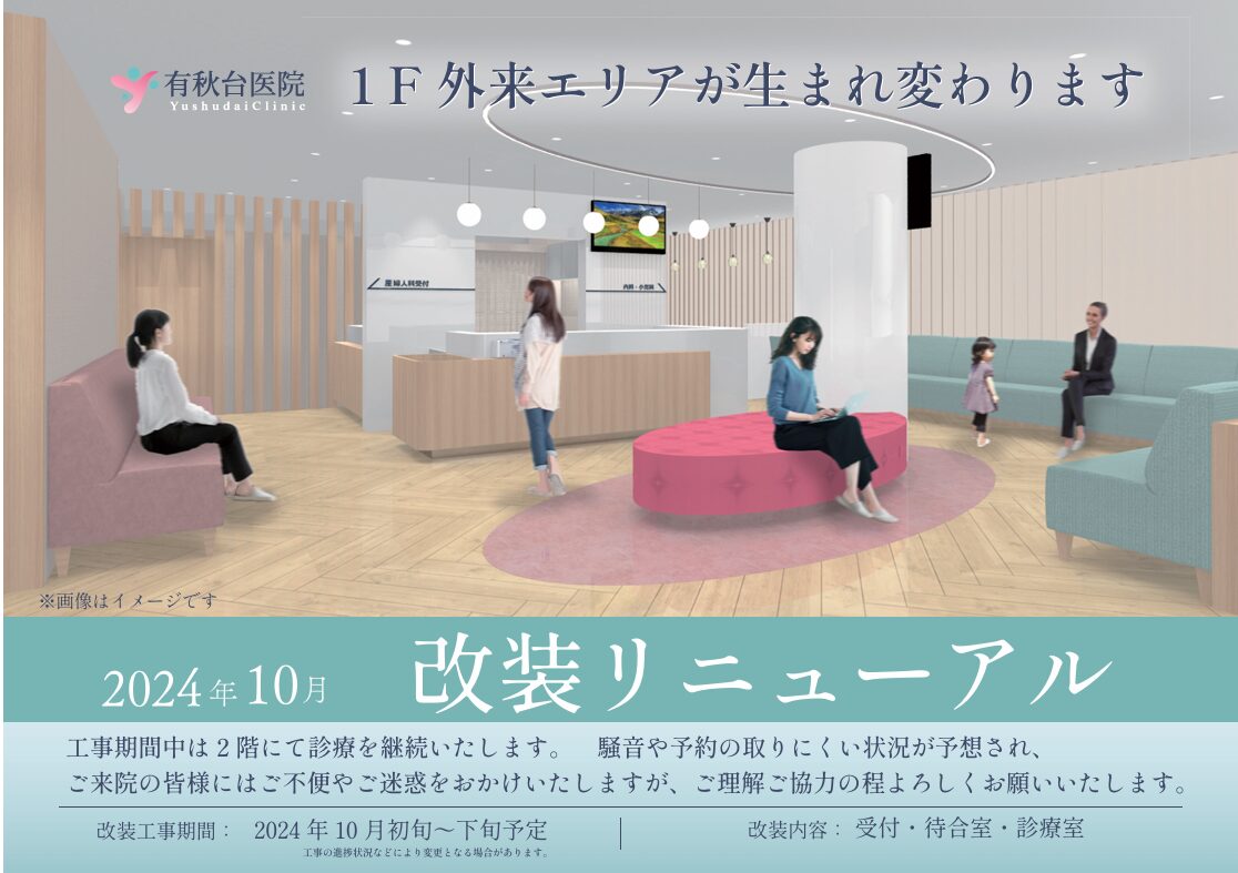 10月から、1Fの外来エリアの改装工事をおこなう予定です。工事期間は1ヶ月程度を見込んでおります。